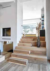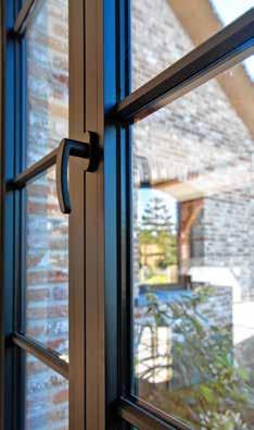 a opté pour le bois afrormosia. Pour les châssis, ce fut l’aluminium noir de la série LAGO avec ouvrant Strato et des portes-fenêtres coulissantes FUMOSLIDE.
