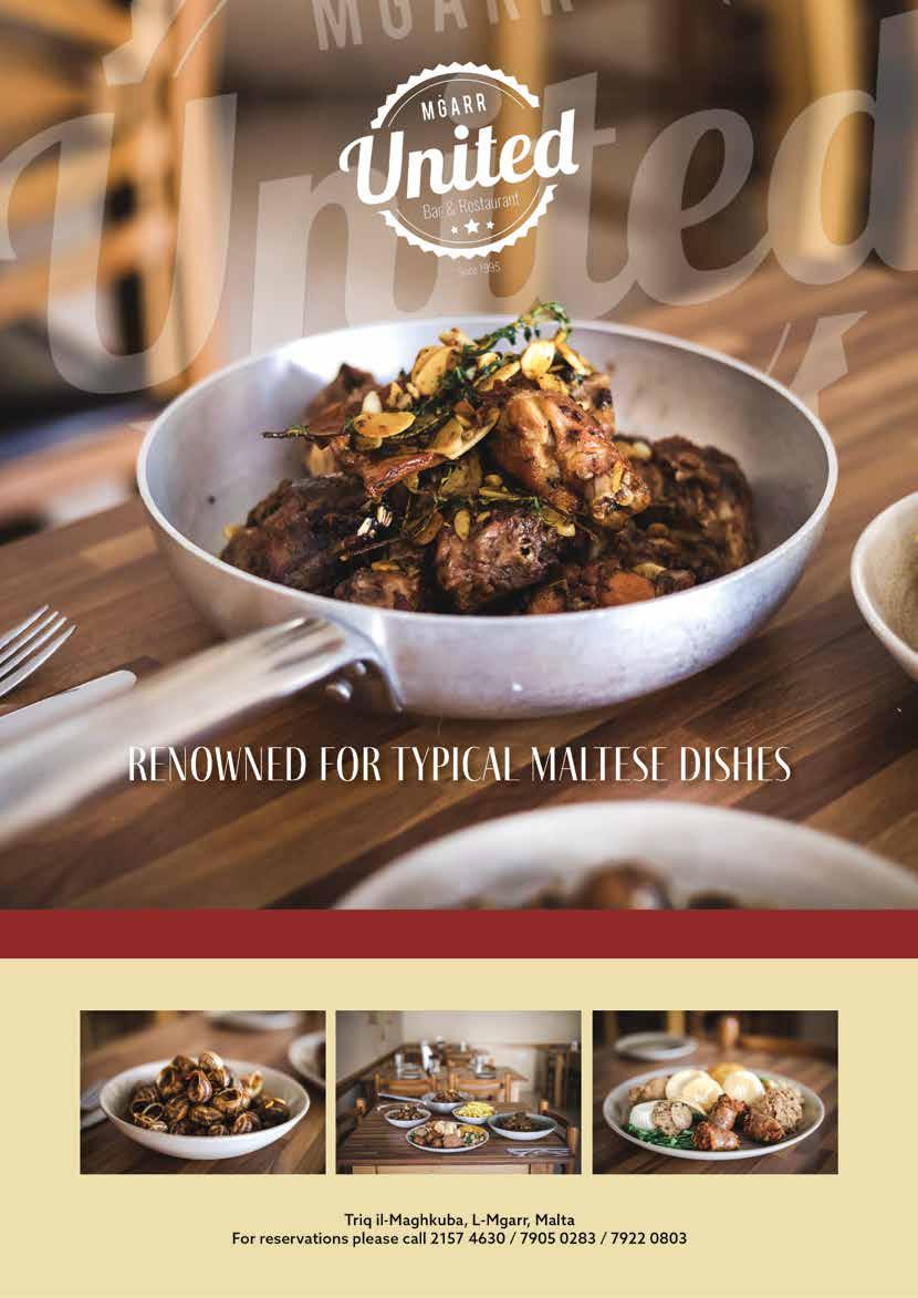 The agricultural village of Mgarr is known to many for its rabbit restaurants, where families and groups of friends have flocked for years to enjoy a traditional fenkata. Among the restaurants that are celebrated for the quality and authenticity of their food, and rabbit in particular, is Mgarr United Bar & Restaurant, the restaurant of the Mgarr football club – and chef and owner Joel Tabone has a lot to do with that.