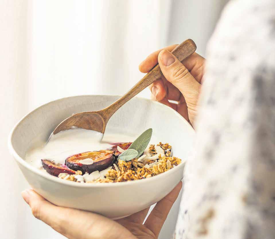 In Gemüse wie Chicorée, Topinambur, Zwiebeln, Artischocken und Hülsenfrüchten sind sogenannte Präbiotika enthalten. Ballaststoffe, die mit ihren Substanzen dabei helfen, dass sich nützliche Darmbakterien gut vermehren können. Probiotischer Joghurt und fermentierte Lebensmittel wie Sauerkraut und Kimchi enthalten noch dazu lebende Mikroorganismen wie Hefepilze, die die Darmbakterien unterstützen. Mit viel frischem Obst und Gemüse nimmt man so eine Vielzahl unterschiedlicher Nährstoffe zu sich – und gleichzeitig Millionen von Mikroorganismen des Lebensmittels. Ein Apfel hat dabei ein ganz anderes Mikrobiom als etwa eine Johannisbeere. Daher gilt auch hier wie so oft: Je größer die Vielfalt und Anzahl an frischen Lebensmitteln, die wir zu uns nehmen, umso besser. Denn das bringt ebenso mehr Vielfalt in unser Darm-Mikrobiom – und