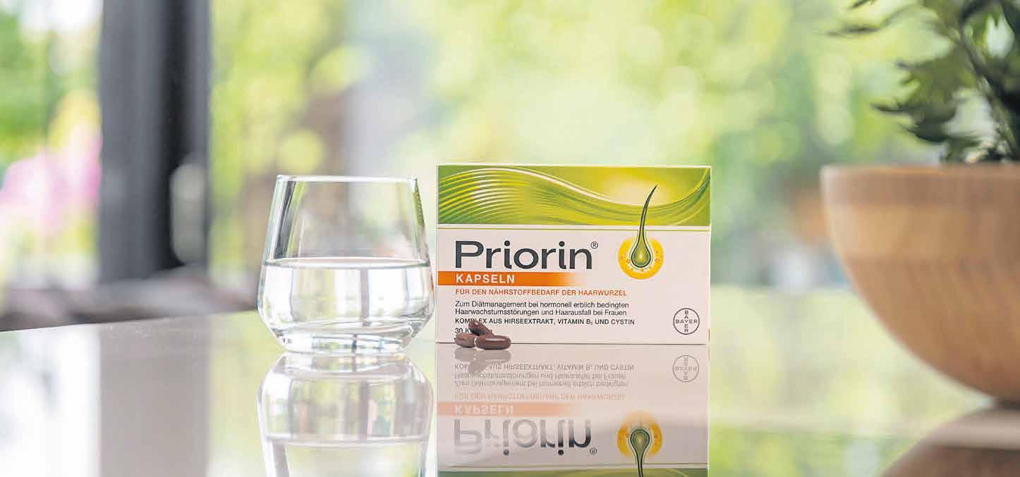 Nachhaltige Unterstützung bei Haarausfall erfordert daher mehr als kurzfristige Pflege von außen. Entscheidend ist die Versorgung der Haarwurzel von innen. Genau hier setzen die wissenschaftlich fundierten Priorin Kapseln an, die auf jahrzehntelanger Forschung basieren und ausgewählte Mikronährstoffe mit einem speziell hergestellten Hirseextrakt kombinieren. Als Lebensmittel für besondere medizinische Zwecke ist Priorin kein verschreibungspfl ichtiges Arzneimittel, sondern ein Produkt zum Diätmanagement bei hormonell erblich