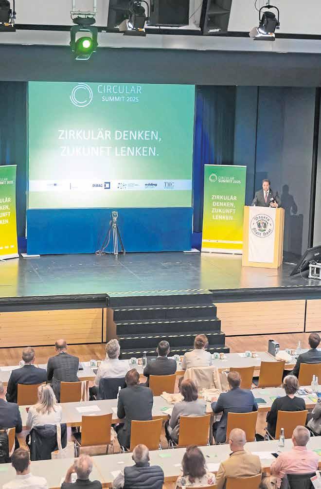 Mit dem Circular Summit hat die Stadt dafür ein zentrales Forum geschaffen, das 2025 erstmals rund 160 Vertreter aus Wirtschaft, Wissenschaft und Politik vereinte. In Keynotes und Diskussionspanels wurden Impulse und Lösungswege entwickelt, wie sich Stoffkreisläufe gemeinsam schließen lassen, welche Chancen KI und Digitalisierung bieten und wie rechtliche Rahmenbedingungen als Motor für Innovationen genutzt werden können. Viele Teilnehmende nutzen die Ge -