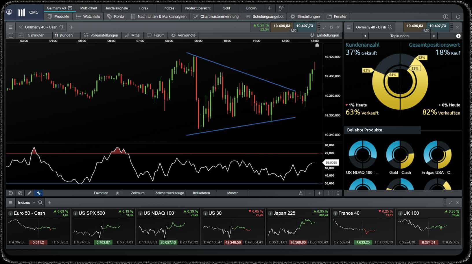 Mit Zugang zu über 12.000 CFDs, Call- und PutOptionen auf wichtige US- und europäische Aktienindizes sowie deutschsprachigem Kundenservice am Standort Frankfurt positioniert sich CMC Markets als Partner für Anleger, die sich aktiv und informiert mit den Anforderungen moderner Finanzmärkte auseinandersetzen wollen.