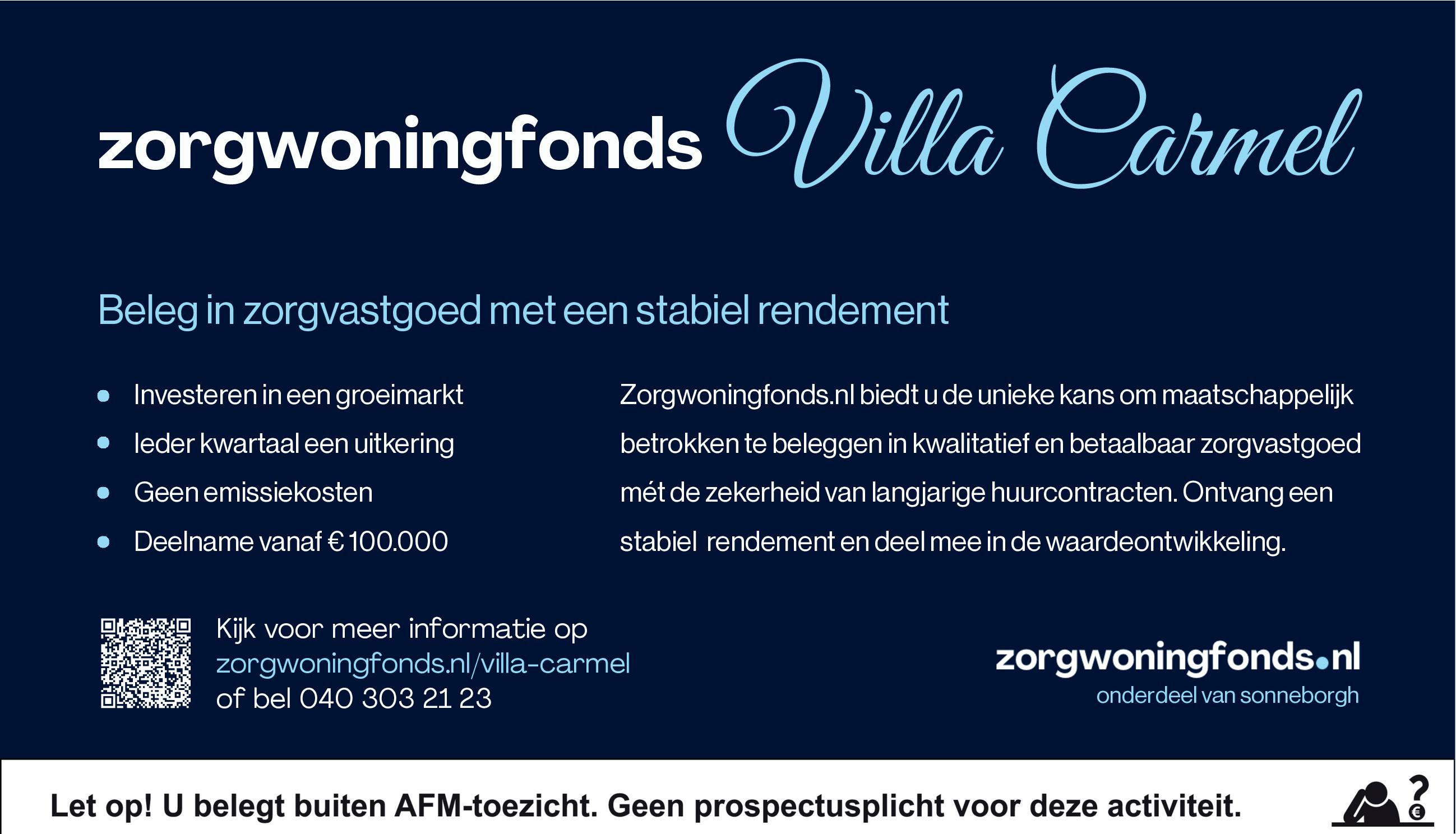 Sonneborgh nu Zorgwoningfonds Villa Carmel. Het fonds investeert in een zorgvilla voor ouderen met dementie en lichamelijke klachten. De locatie wordt langjarig gehuurd door een zorgorganisatie met een uitgebreid trackrecord van meer dan dertig zorgvilla’s in Nederland.