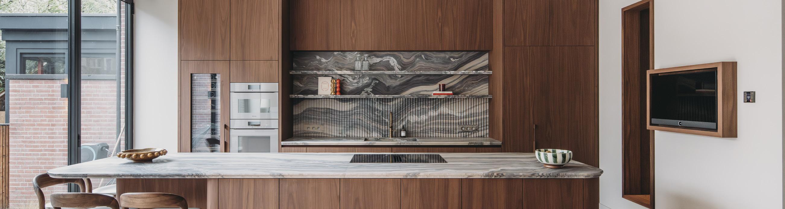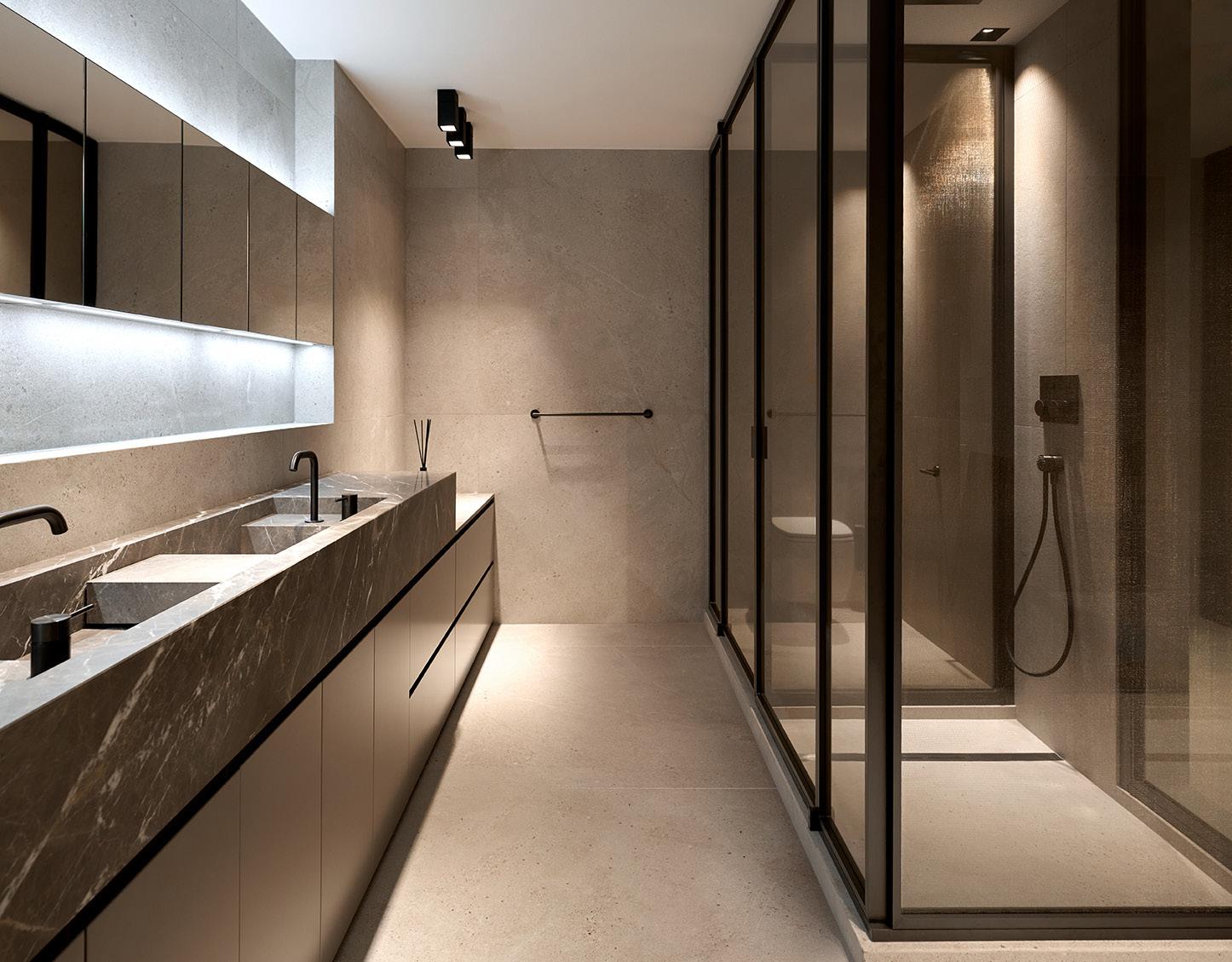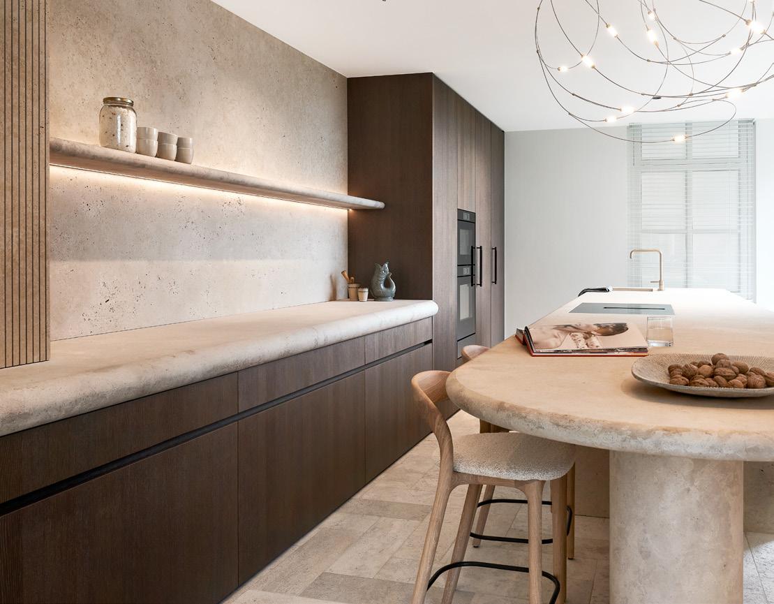 hiervoor uit de collecties van onder andere Eggersmann keukens, Sub-Zero en Gaggenau. De badkamers en leefruimtes worden gecureerd uit de collecties van onder andere Antonio Lupi, Agape en Molteni&C – niet als losse elementen, maar naadloos versmolten met het ambachtelijke maatwerk van Van Boven.