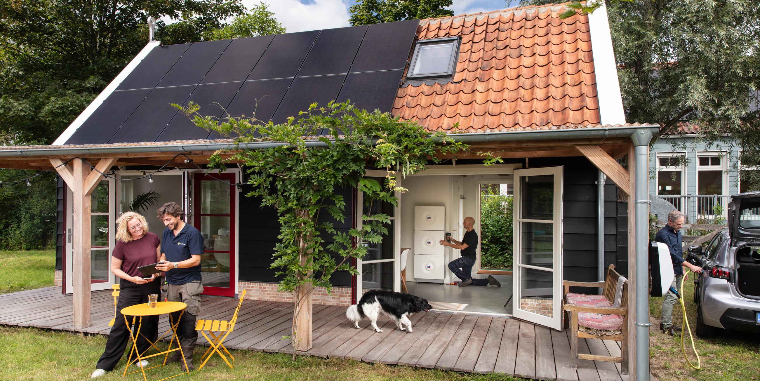 Wie optimaal wil profiteren, begint bij de basis: het dak. Opvallend is dat projectontwikkelaars bij nieuwbouw nog vaak het minimum doen: twee panelen in een dakhoek, net genoeg voor het energielabel. “De enige manier om energie op te wekken is je dak, dus benut dat optimaal.” De volgende stap is integratie. Niet losse producten naast elkaar, maar een energiemanagementsysteem dat alles laat samenwerken: batterij, laadpaal, warmtepomp en dynamisch contract als één geheel. “Mensen moeten er niet meer over nadenken. Als het hard waait of de zon volop schijnt en de stroomprijzen negatief zijn, moet dat systeem zelf handelen.”