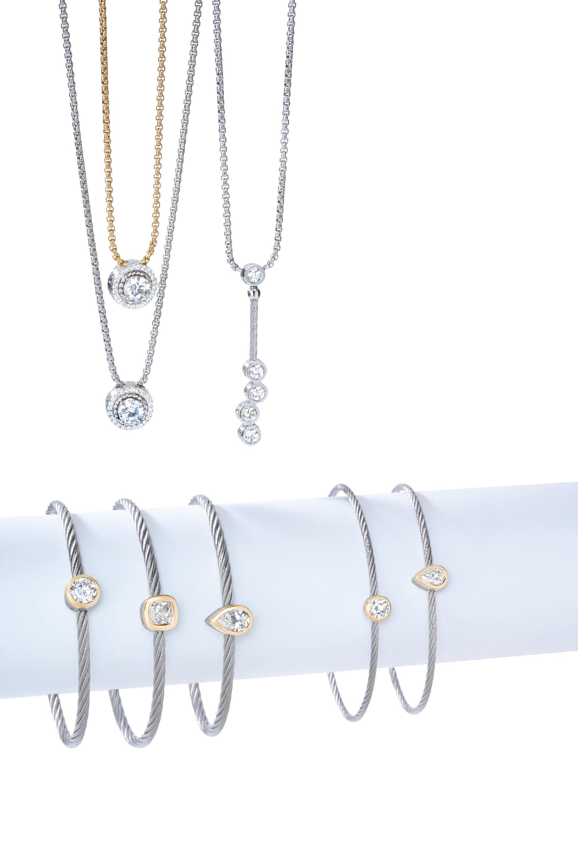 ALOR ® is a brand celebrated for modern designs and innovative use of materials. Each features stainless steel cable, often accented with 18K gold, seamlessly blending casual simplicity with sophistication.