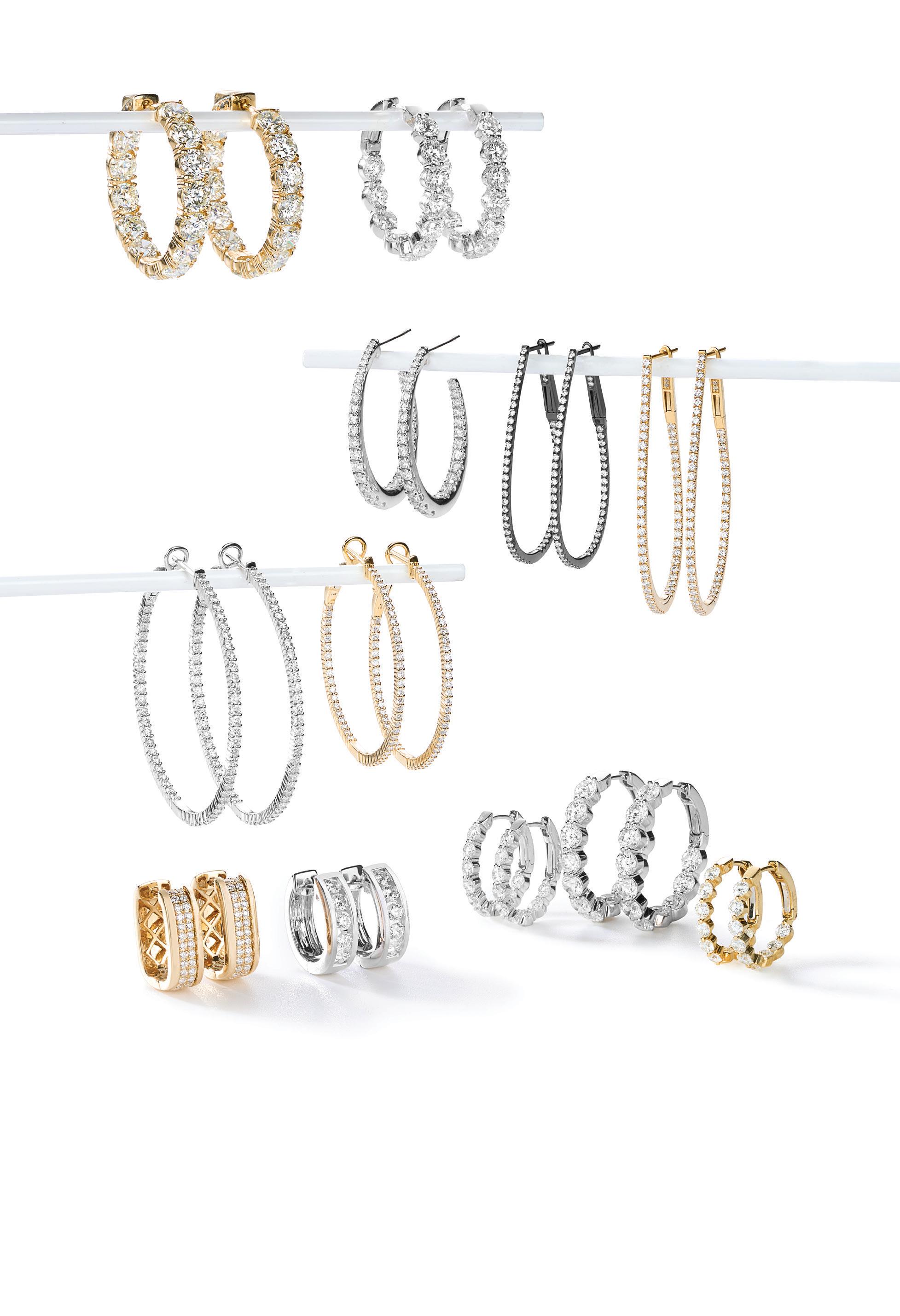 Diamond hoops elegantly showcase diamonds on both the “Outside and Inside” to create a continuous loop of diamonds!