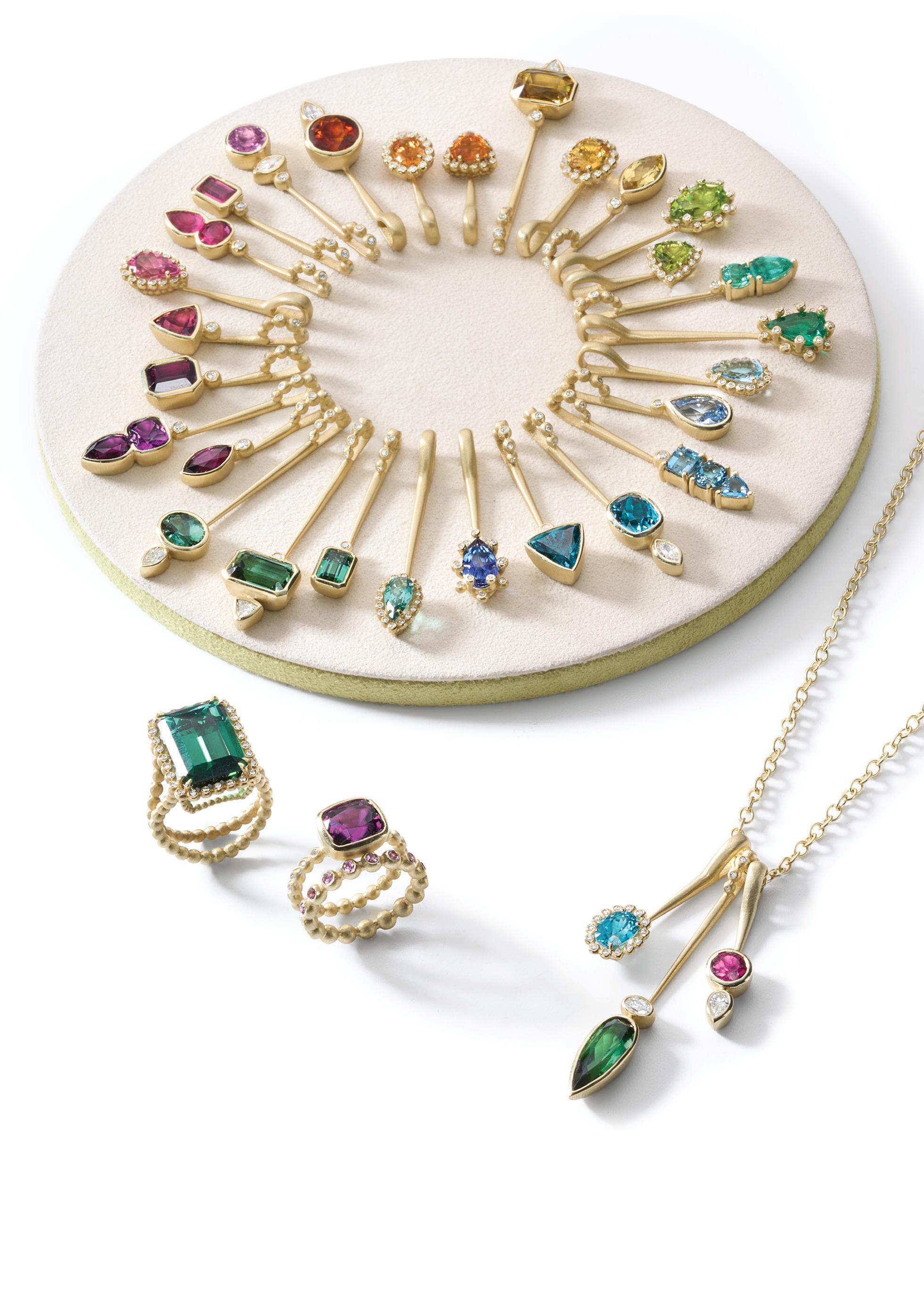 Suzy Landa creates bold, elegant jewelry with vibrant one-of-a-kind gems. Throughout the collection Suzy’s passion for color, and love for timeless craftsmanship shine. Her designs are magnificent from all angles, often with subtle surprise elements.