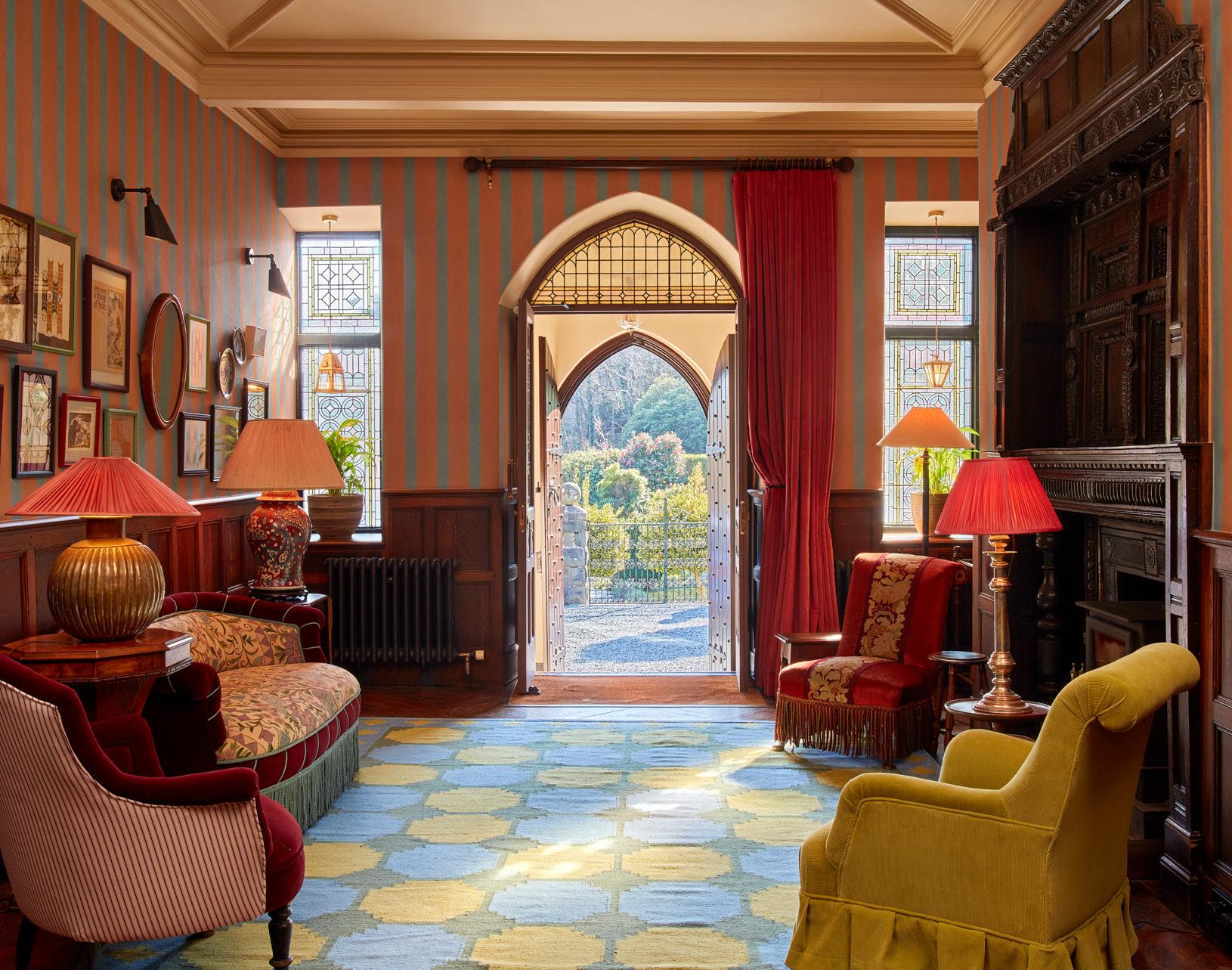 Inspired by the dramatic ancient landscape of Eryri (Snowdonia) National Park, this grand old house possesses its own rich history, with each room offering a unique and characterful appeal. This mountain retreat is undergoing a meticulous refurbishment, with phase two of its restoration introducing Nicola Harding’s striking designs to five additional bedrooms and creating a new lounge bar adorned with rich mahogany panelling and sumptuous red velvet seating.