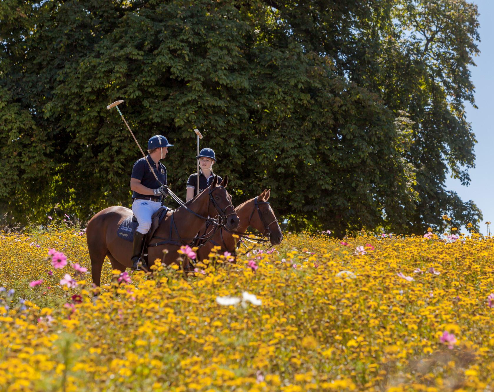 ranging from private lessons to halfand full-day masterclasses, tailored with exquisite precision. For those who prefer to observe, summer polo matches unfold just beyond the terrace, where unrivalled field-side hospitality pairs chilled Champagne with uninterrupted views of the thrilling play. Whether mounted or spectating, guests are welcomed into a rarefied world where sport, society, and the beauty of the countryside meet. It is, quite simply, polo at its most polished.