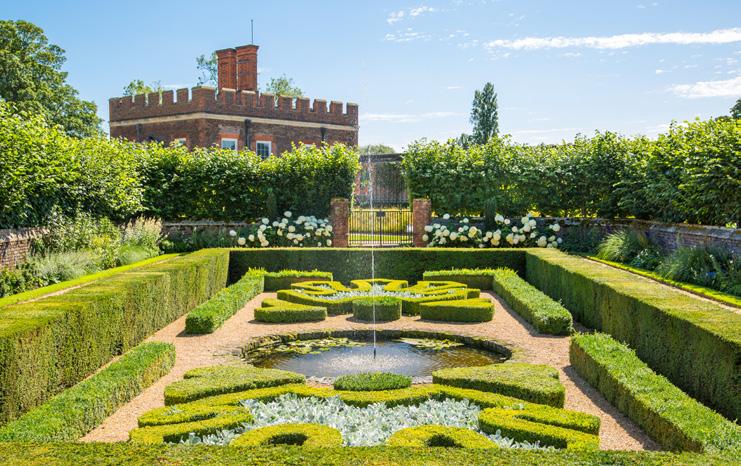 Beyond the open grounds, the walled gardens offer a more secluded setting. Red brick walls, some dating back to the Elizabethan era, shelter colourful beds of roses and seasonal blooms, while a long water feature draws the eye through the space with pleasing symmetry inspired by Italian Renaissance design.