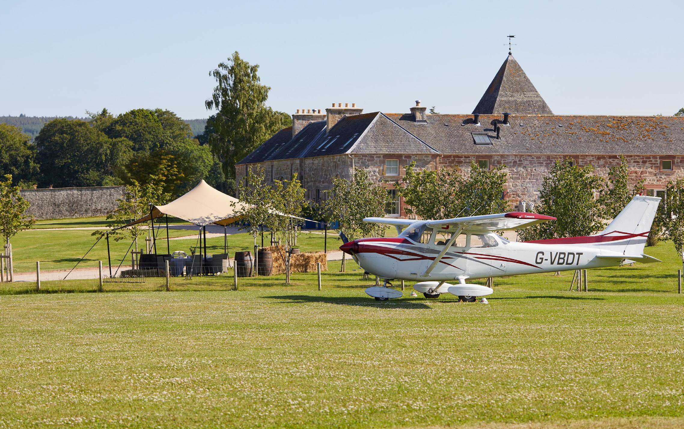Arriving at Newhall Mains is an experience in itself, especially when you land directly on its private airfield, the only one of its kind at a UK hotel. Nestled in the heart of the Cromarty Firth, the hotel’s private grass strip measures 630 metres and lies just eight nautical miles north-west of Inverness Airport, with smooth, level terrain, clear approaches, and accommodating airspace. Views stretch across the barley fields and rolling hills of the Black Isle, and the sense of adventure continues long after the initial landing. Scenic flights can be arranged aboard the hotel’s own PC-12 aircraft, offering unforgettable views across the Scottish Highlands. Guests can soar over Loch Ness and Ben Nevis, stop for lunch on the Isle of Skye, or admire the famous Glenfinnan Viaduct from the air, famed for its role in the Harry Potter films. Despite all its thrilling possibilities, Newhall Mains remains reassuringly grounded, a family-owned retreat where rare access and aviation adventure are delivered with warmth and ease.
