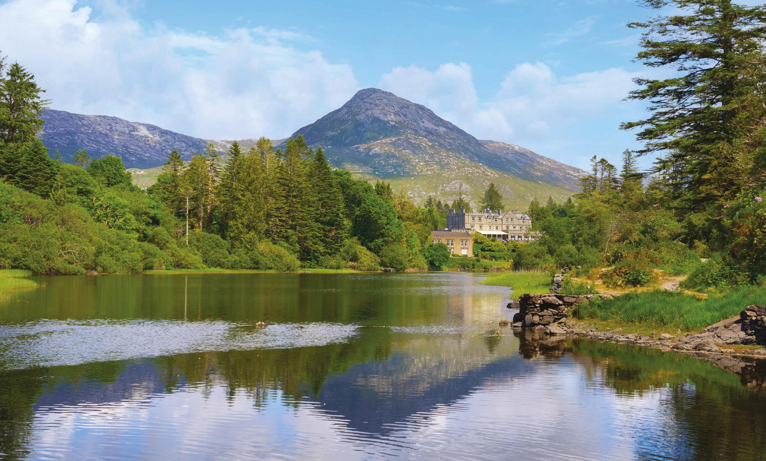 Strolling around, you’ll stumble upon gardens that feed both the eye and the table. Lavender and climbing roses add scent and colour to stone walls that shelter rows of crops. Apple trees and berry bushes mark the passing seasons while dahlias, foxgloves and sweet peas bring bursts of bright blooms. Early mornings carry mist from the lake and birdsong from the trees, as you accompany naturalists on walks to learn about the local biodiversity. You can also head for the hills with the estate’s resident wolfhounds and red setters. Their affectionate enthusiasm will leave you with a smile on your face and a sense of having experienced something truly memorable and unmistakably Irish.