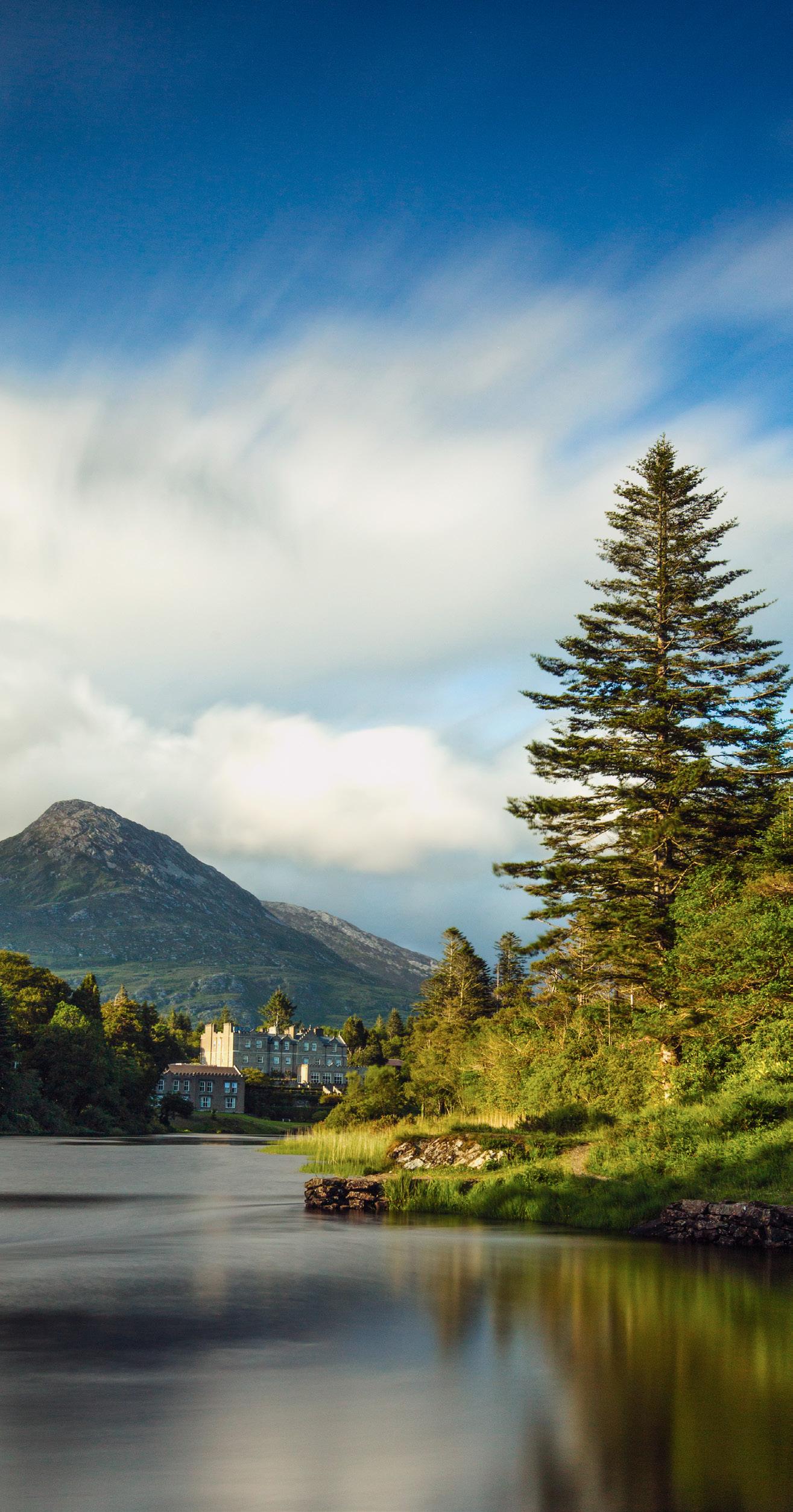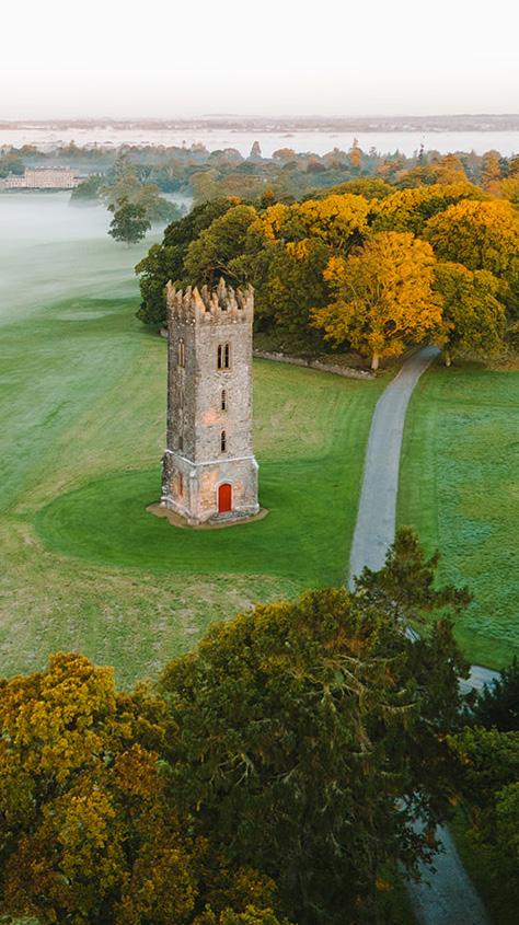 On a private guided walk, guests follow riverside paths past the ivy-clad Shell Cottage, black limestone bridges, and the 500-year-old Tyrconnell Tower. Ancient oak, ash and beech surround the trails, sheltering