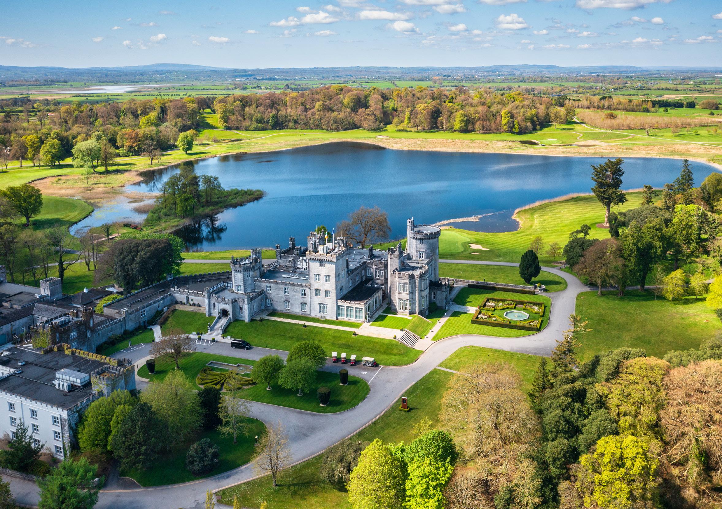 Tall trees line the approach to Dromoland Castle, their branches parting to reveal a grey-stone stronghold beside a shimmering lake. Built in the 16th century, it was once the seat of the direct descendants of Brian Boru, the legendary High King of Ireland. That royal lineage still echoes through the towers, turrets and richly layered interiors.
