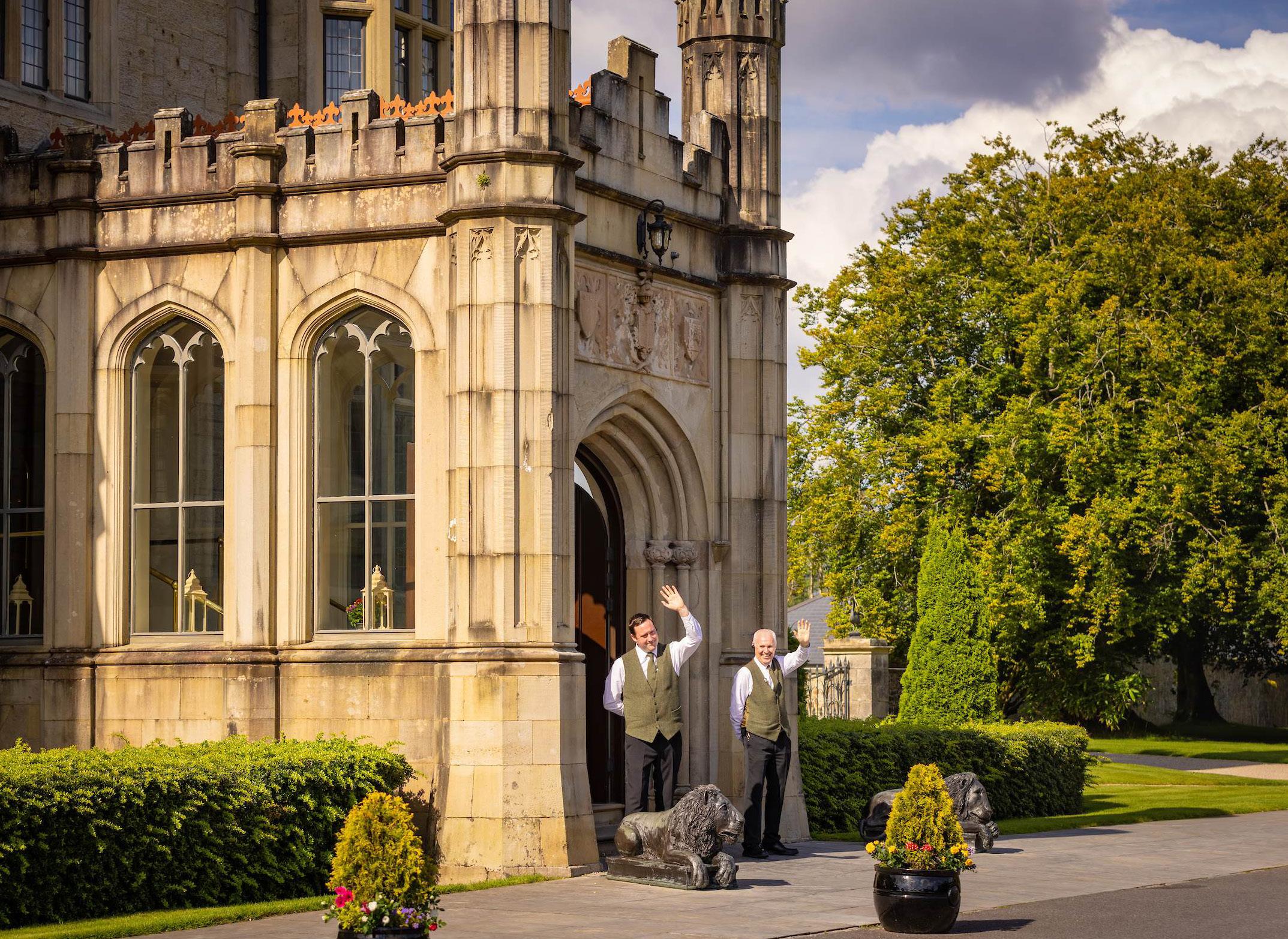 Staying within the castle allows guests to experience this storied setting at an unhurried pace. A VIP garden tour leads across lawns that slope gently towards the water, where swans glide across the surface, and mature trees frame the scene, their