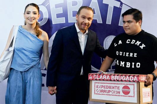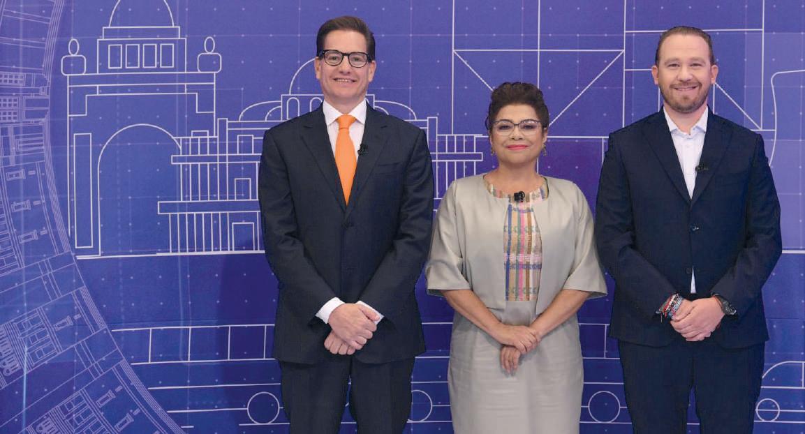 TERCER Y ÚLTIMO DEBATE. Con los temas de seguridad y desarrollo urbano en la mesa, los aspirantes a la jefatura de Gobierno cruzaron acusaciones de corrupción, mala administración y se dieron espacio para presentar sus propuestas. La candidata de la 4T (Morena, PT y PVEM), Clara Brugada, destacó los logros de la exjefa de Gobierno Claudia Sheinbaum en seguridad, subrayó el papel del aspirante panista en el expediente de corrupción del llamado Cártel Inmobiliario y exhibió al coordinador de seguridad en la alcaldía Benito Juarez, César Barrientos, “El Jefe Goliat”; además, adelantó que Omar García Harfuch, Marcelo Ebrard y Ernestina Godoy serán parte de un Consejo en materia de seguridad. El panista Santiago Taboada, con su estilo estridente, intentó contrarrestar los señalamientos de corrupción inmobiliaria. Y el tercero, sin pena ni gloria: el emecista Salomón Chertorivski, en la medida que fue ignorado por sus adversarios, tuvo tiempo de sobra para presentar sus sueños y “propuestas de gobierno”. Por Elia Cruz Calleja. Foto: Cortesía. Pág. 10