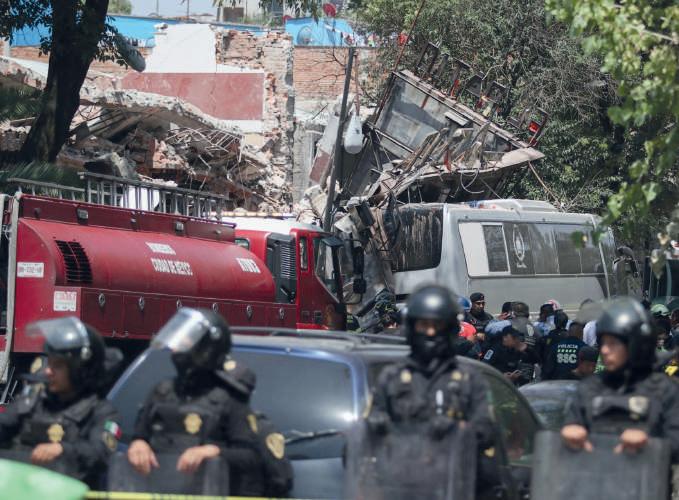 a la población. Las operaciones de búsqueda de posibles víctimas continúan, ya que la marquesina del edificio colapsado cayó sobre la zona peatonal.