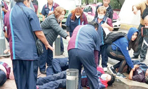 Grandes helicópteros sobrevolaron y descendieron sobre la cancha y la explanada del estadio olímpico Benito Juárez de esta ciudad fronteriza. De uno de las aeronaves, un soldado descendió por una cuerda desde lo alto trasladando una camilla en la que luego amarró y subió a un supuesto herido, atestiguó la AFP. Participantes del simulacro actuaron como lesionados, tendidos sobre las tribunas, lo que dio verosimilitud a la maniobra en la que tomaron parte numerosos soldados en el terreno, ambulancias y un camión de bomberos que ayudó a apagar un auto en llamas.