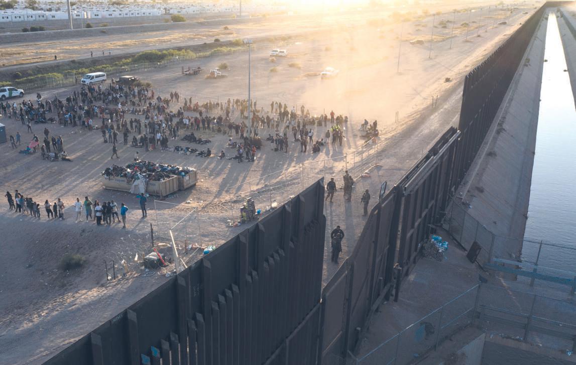 DUREZA ANTE MIGRANTES. A horas de que expirara el Título 42, norma que estableció mayores restricciones para los migrantes durante la pandemia, Alejandro Mayorkas, el secretario de Seguridad Nacional de EU, advirtió que esto no significa que la frontera esté abierta. “No escuchen las mentiras de los traficantes. Serán devueltos”, adelantó. Por su parte, el presidente López Obrador informó ayer que acordó con su homólogo Joe Biden cooperar para que no haya “caos fronterizo” y que habrá mayor presencia de la Guardia Nacional en la frontera sur. La imagen, en la frontera con El Paso, Texas: migrantes se entregan a la Patrulla Fronteriza para tramitar solicitudes de asilo. Foto: AFP. Pág. 13