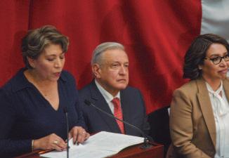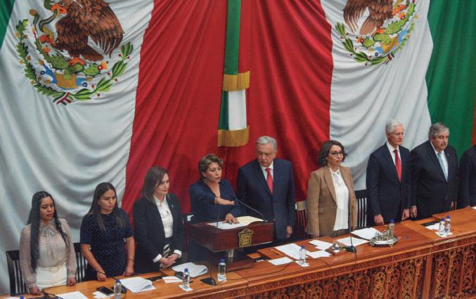 RELEVO EN EL ESTADO DE MÉXICO. Ayer, con la presencia del presidente Andrés Manuel López Obrador, Delfina Gómez, de la alianza Morena, PT y PVEM, rindió protesta como gobernadora en el estado —la primera mujer en lograrlo—. “El pueblo ha hablado claro, se ha manifestado a favor de un cambio profundo que pone fin a un régimen de unos cuantos”, señaló. Foto: Cuartoscuro. P.
