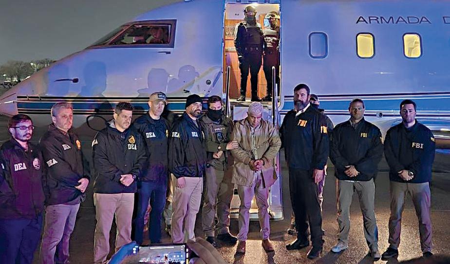 ACCIÓN INÉDITA. Ayer el gobierno de México extraditó a 29 criminales que se encontraban purgando penas en diferentes centros penitenciarios del país, entre elllos, a Rafael Caro Quintero y a Vicente Carrillo Fuentes, alias ‘El Viceroy’. La Secretaría de Seguridad y Protección Ciudadana (SSPC) indicó: "[Los traslados se hicieron] bajo solicitud del Departamento de Justicia de EU. Esta acción se da dentro de las labores de coordinación, cooperación y reciprocidad bilateral, en el marco del respeto a la soberanía de ambas naciones". En la imagen, Caro Quintero, ya en EU. Pág. 4
