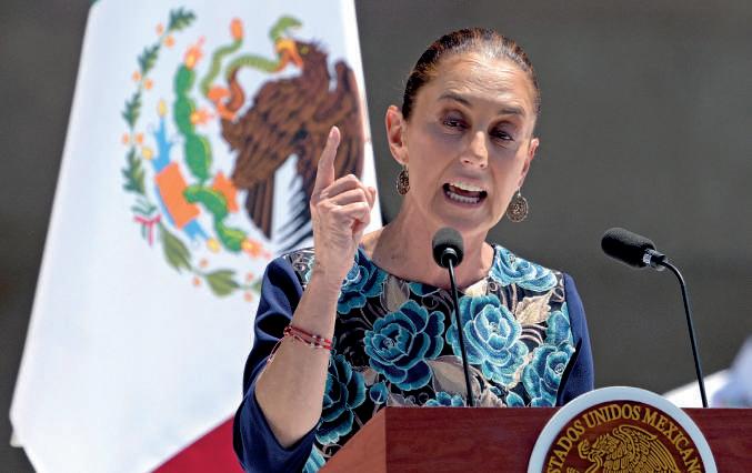Claudia Sheinbaum Pardo al tomar la palabra. Bajo el inclemente sol de mediodía que toleraban los miles de personas que se congregaron en la plaza de la Constitución, la jefa del Ejecutivo mexicano aseguró que no puedo haber afectaciones al pueblo de México por decisiones del gobierno o hegemonías extranjeras, y cuando las hubiera, dijo, actuará de inmediato.