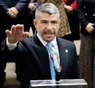 Tras ser conducido a la sala de recepción de la Cámara donde aguardó unos minutos, el mandatario subió a la tribu-