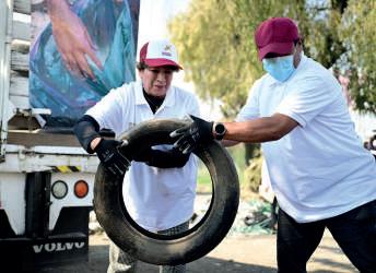 • LA GOBERNADORA del Estado de México, Delfina Gómez Álvarez, dio el banderazo de inicio de la segunda jornada de la campaña “Limpiemos Nuestro EdoMéx”, mediante la cual se realiza la recolección y reciclaje de llantas. Dicha labor es realizada por servidores públicos del gobierno estatal en diversos municipios de la entidad federativa más grande del Valle de México.