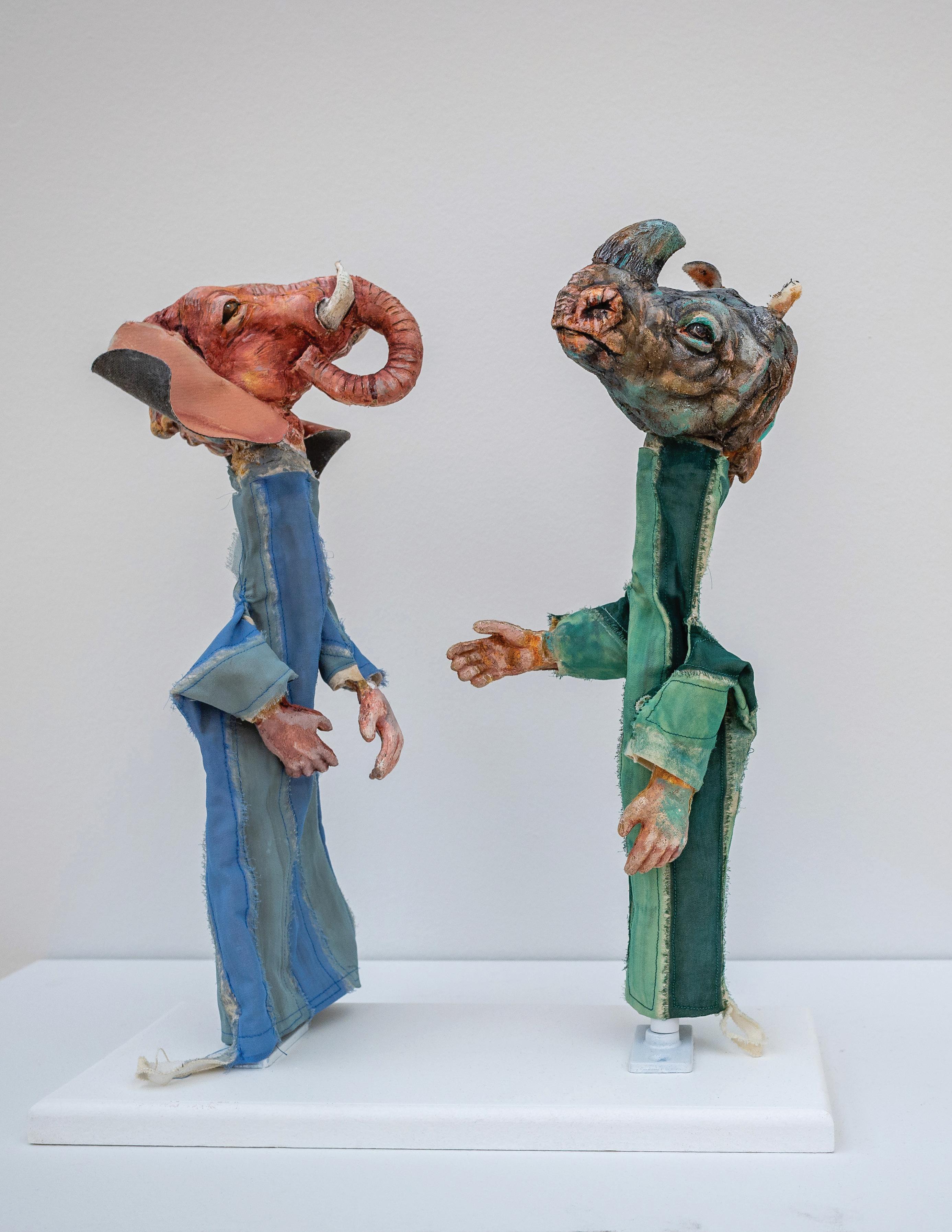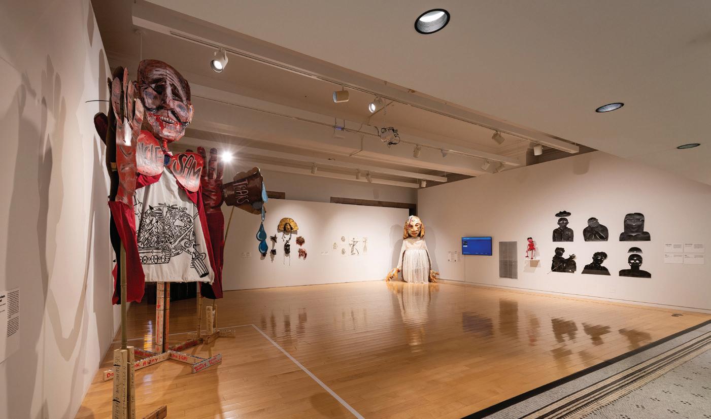 En los pasillos de mármol del “Palacio del Pueblo” (el Chicago Cultural Center desde diciembre de 2024 a Abril de 2025), una marioneta de tres metros vivió una segunda vida, rodeada de sus hermanes distanciades, con cara de Jano, con su lado más ruidoso silenciado, escondido.