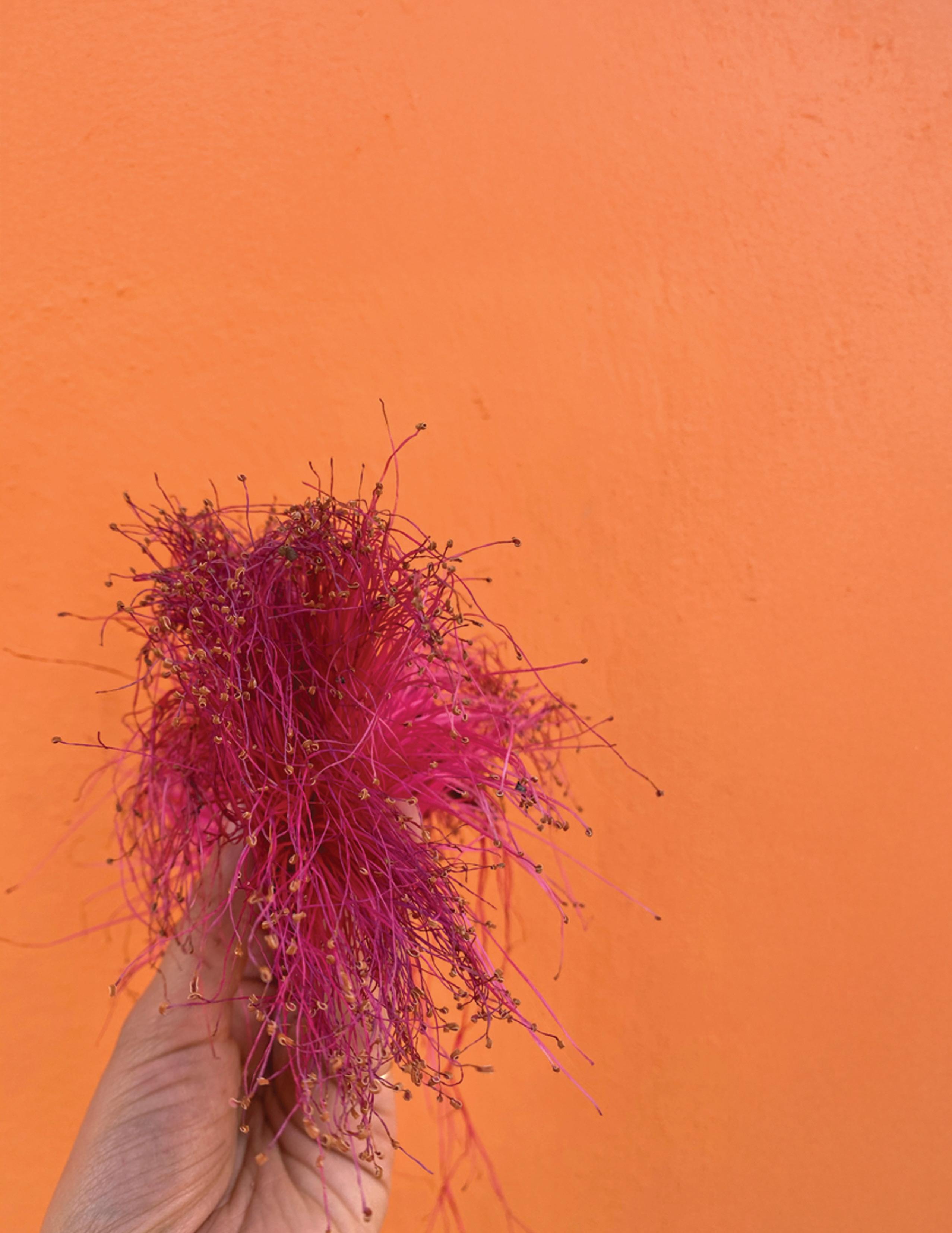 Sofía Fernández Díaz es una artista y educadora interdisciplinaria de la Ciudad de México. Su práctica explora relaciones entre materialidad, memoria y territorio. Combina técnicas tradicionales y contemporáneas, investiga las conexiones ocultas entre procesos orgánicos e industriales, trabajando con fibras, tintes naturales, cera de abeja y materiales encontrados para crear narrativas táctiles de transformación.