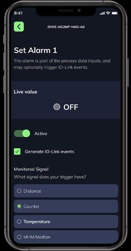 • Ereignisbasiertes IO-Link-Signal aktiviert einen Alarm, wenn eine Toleranzüberschreitung festgestellt wird
