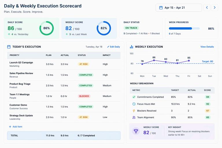 Thescorecardshouldhelpaprofessionaltrackoperationaldisciplineacrossthreedimensions: consistency(didIshowup),completion(didIfinishwhatIstarted),andfocus(didIworkonthe rightthings).