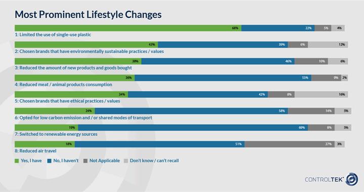 The graph shows the top lifestyle changes for sustainability.