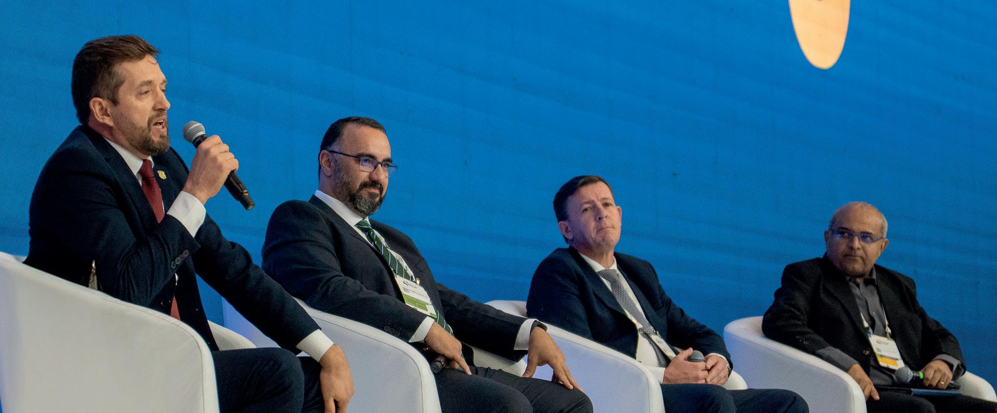 ESPECIALISTAS TARIMBADOS deram o tom das discussões no painel Os desafios e oportunidades do uso da Inteligência Artificial no Setor Público Brasileiro. Participaram do debate André Sucupira E , diretor-jurídico de Governança e Inovação da Prodesp e coordenador da Comissão de Inteligência Artificial da ABEP-TIC; Marcio Cesar Pereira F, subsecretário de Tecnologia da Informação do Estado de Goiás; Welsinner Brito G, superintendente de Arquitetura Corporativa, Plataforma e Nuvem do Serpro; Manuella Ribeiro H, coordenadora de projetos de pesquisa TIC no Centro Regional de Estudos para o Desenvolvimento da Sociedade da Informação (Cetic.br); e Felipe Cruz I, gerente de Soluções