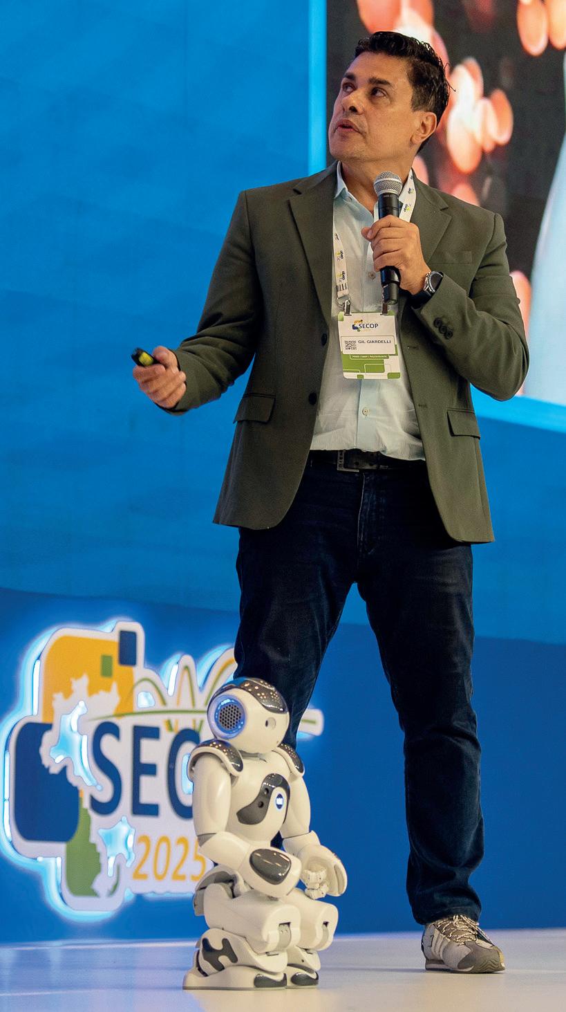 O ALERTA foi claro: “Quem estiver vivendo como vivia em 2024 já está atrasado”. Assim Gil Giardelli, estudioso de inovação e economia digital, começou sua palestra no SECOP 2025. O pano de fundo é que o custo com inteligência artificial caiu drasticamente, viabilizando grandes saltos de produtividade. “Tudo que foi comentado em filmes de ficção científica e livros está virando realidade. A economia da IA é a maior janela de prosperidade da nossa geração”, assinalou. Giardelli foi professor convidado na Universidade de Stanford, MIT e Imperial College. No MediaX da Stanford, pesquisou o impacto da inovação, o futuro do trabalho em tempos de IA, robôs e humanoides, e a transformação digital nos negócios.