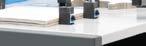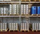 Da sinistra: il nuovo imballaggio utilizza meno imbottitura ammortizzante, riducendo la quantità del materiale di imballaggio. Di conseguenza verranno spedite più lastre in un pacco con le stesse dimensioni. Lo strato di PE tra ogni lastra viene eliminato e si vede infatti solo sopra e sotto il pacco / Caption: From left; the new packaging uses less cushioning, reducing the amount of packaging material. As a result more plates will be shipped in the same size package. The layer of PE between each plate is eliminated and only appears on top and bottom