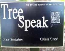 Using a smartphone QR code reader on the image above will lead you to a database of information on a particular tree at Smith College.