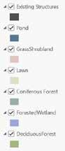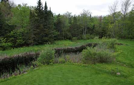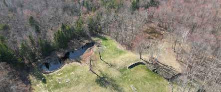 There are two main areas of pooling within the existing cleared area: the old barn foundation and in the south lawn. Pooling in the south lawn is likely caused by shallow bedrock that creates ledges, directing water to pool at micro low points in the lawn and near the pond. Additionally, this area has hydric soils which hold onto water and prevent quick infiltration. A percolation test in the south lawn took several hours to drain just two inches. On the other hand, pooling in the old barn foundation is likely caused by soil compaction from past uses. These areas of pooling impact potential program areas. Wet spots should be vegetated with plants that thrive in wet conditions, and any program areas in wet spots should be elevated to avoid disturbing the soil, or could be regraded to divert water elsewhere on site.