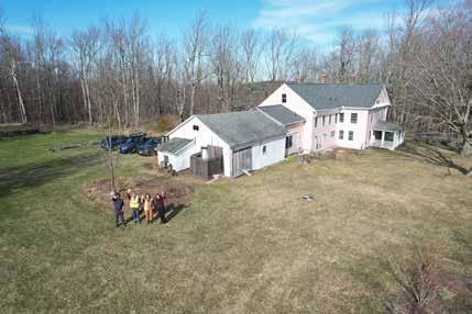 Conway student team and Relational Uprising Co-Directors stand at west end of the 230-yearold farmhouse in a three-acre cleared area of the heavily wooded site, April 2025.