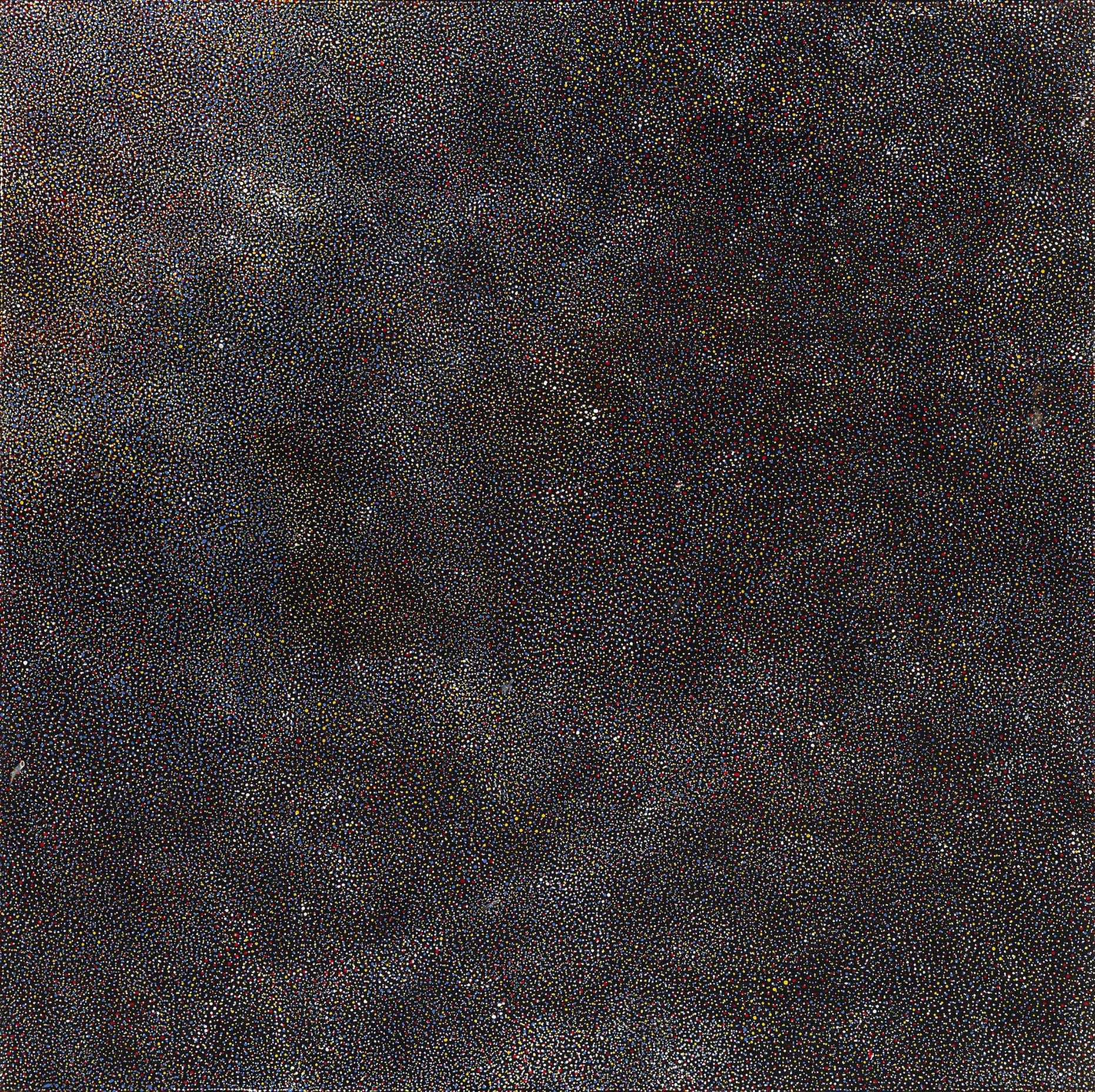 Anmatyerre artist Angelina Pwerle began painting her celebrated pointillist interpretations of the anwekety (bush plum) Dreaming in mid-1996, in the weeks following Emily Kame Kngwarreye’s death. From the outset, the Bush Plum works were potent, fully formed and emotionally resonant. Many of these early works were laid on a deep and expansive black ground.