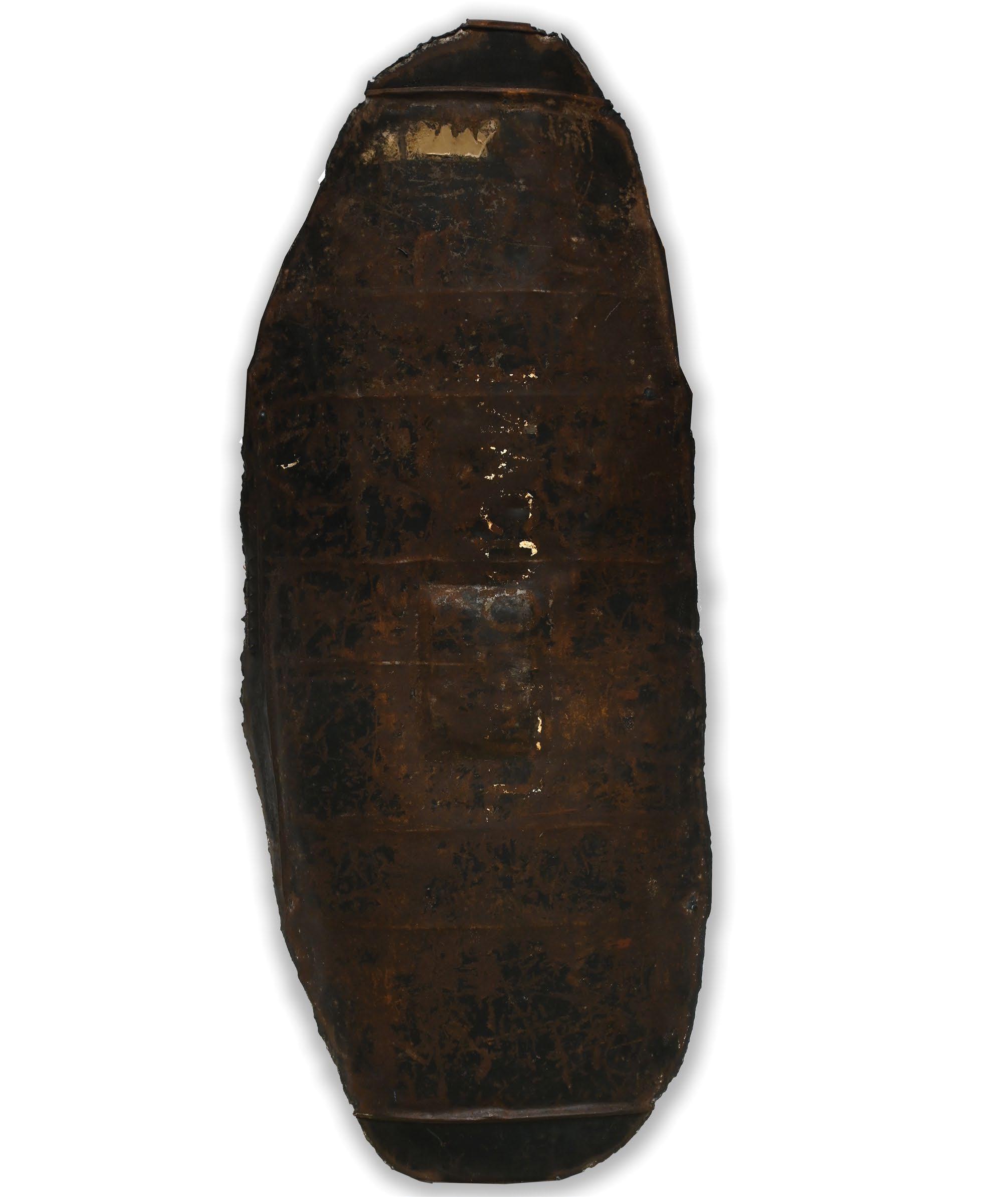 In this Trunk Shield, Mellor utilises reclaimed metal sourced from the base of a vintage travelling trunk as a potent metaphor to convey the displacement experienced by his great-grandmother, a member of the Mamu/Ngadjonji people. The gradual deterioration of the shield’s metal surface serves as a poignant allusion to the erosion of traditional Indigenous culture over time, a consequence of the influence and intervention of Christian missionaries.