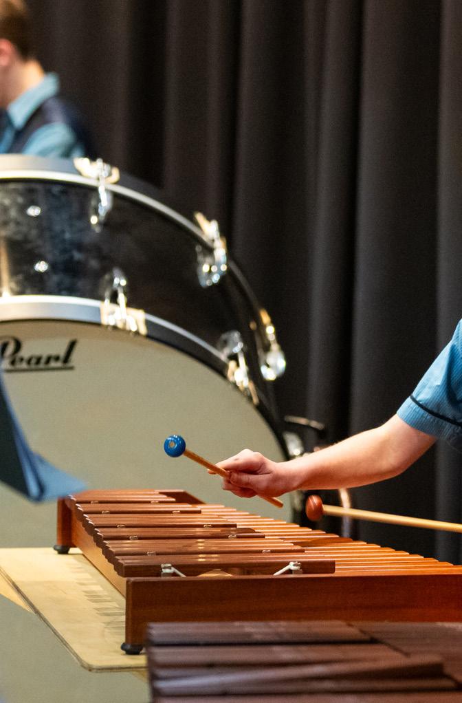 Lessons are based on learning percussion rudiments (e.g. stick control and coordination), as well as playing drum kit, keyboard percussion (e.g. xylophone) and auxiliary percussion (e.g. maracas) depending on what is needed in College ensembles.