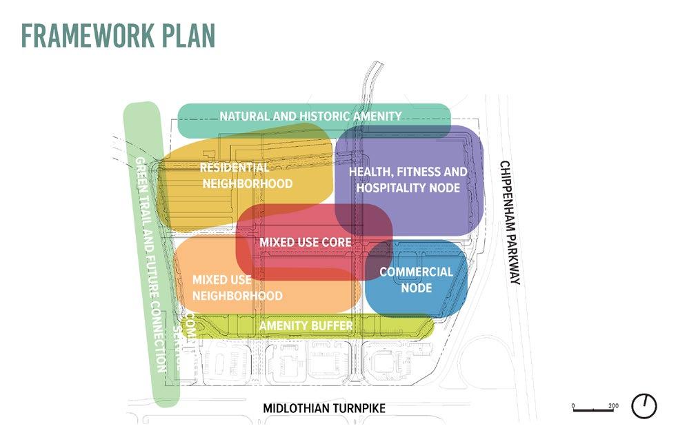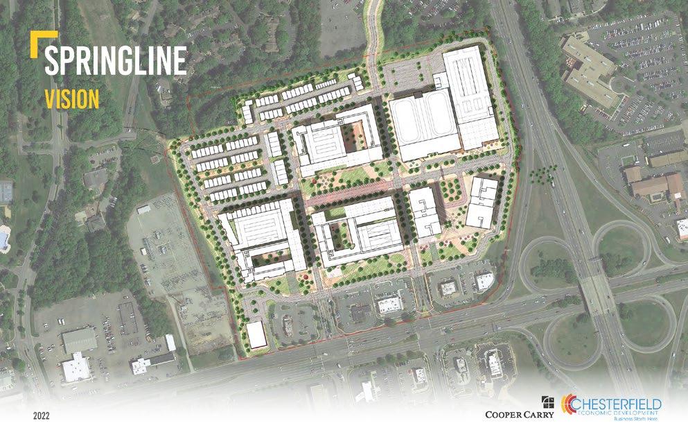 Guiding principles prioritize density, multi-generational housing, and active ground-floor engagement, while leveraging existing greenways and future bridge connections to strengthen regional access. The result is a phased, adaptable plan that reinforces identity, enhances connectivity, and positions Springline as a recognizable gateway for Chesterfield County.