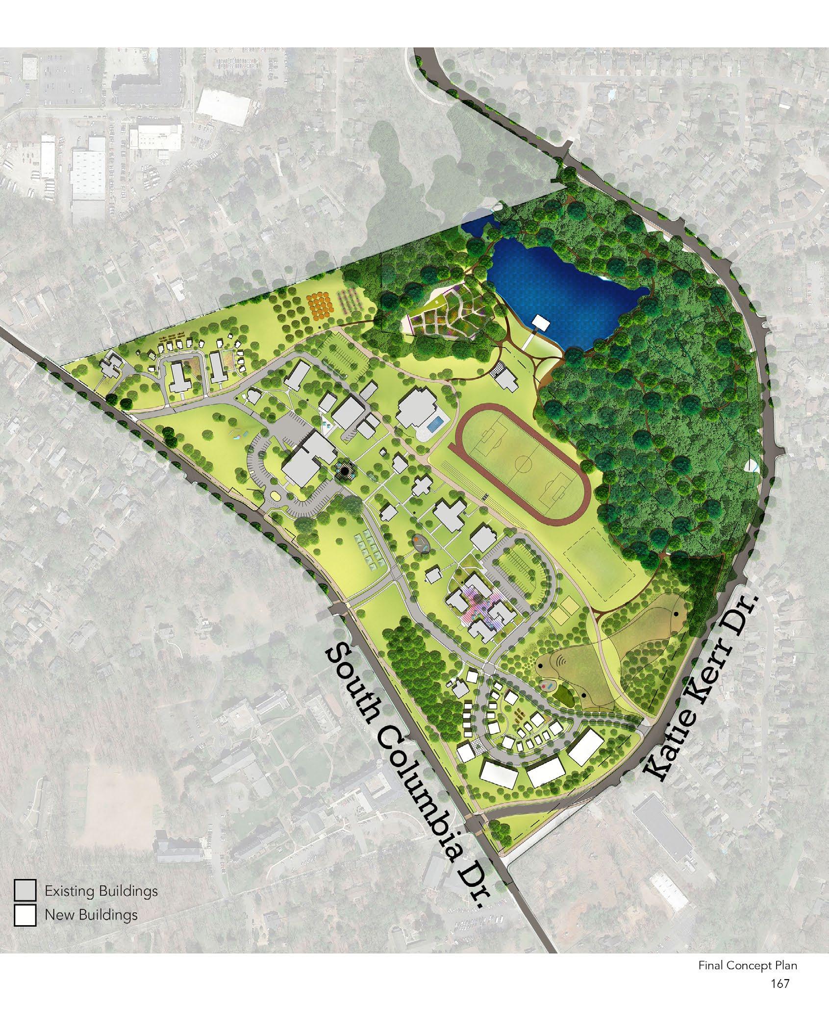 A 77-acre master plan transforming a former institutional campus into a civic park anchored by recreation, affordable housing, and nonprofit uses. The framework established phased implementation strategies guiding infrastructure improvements, recreation investment, and long-term redevelopment.
