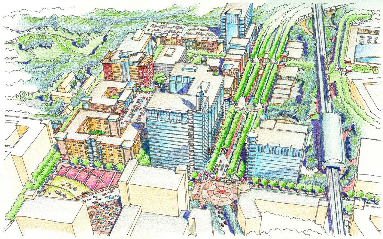 The plan establishes a clear framework for public investment and private redevelopment, prioritizing vibrant streets, high-quality public spaces, and multimodal connections. Targeted community engagement informed key decisions, resulting in an adopted Urban Design Manual and Form-Based Code that provide lasting guidance for coordinated redevelopment and implementation.