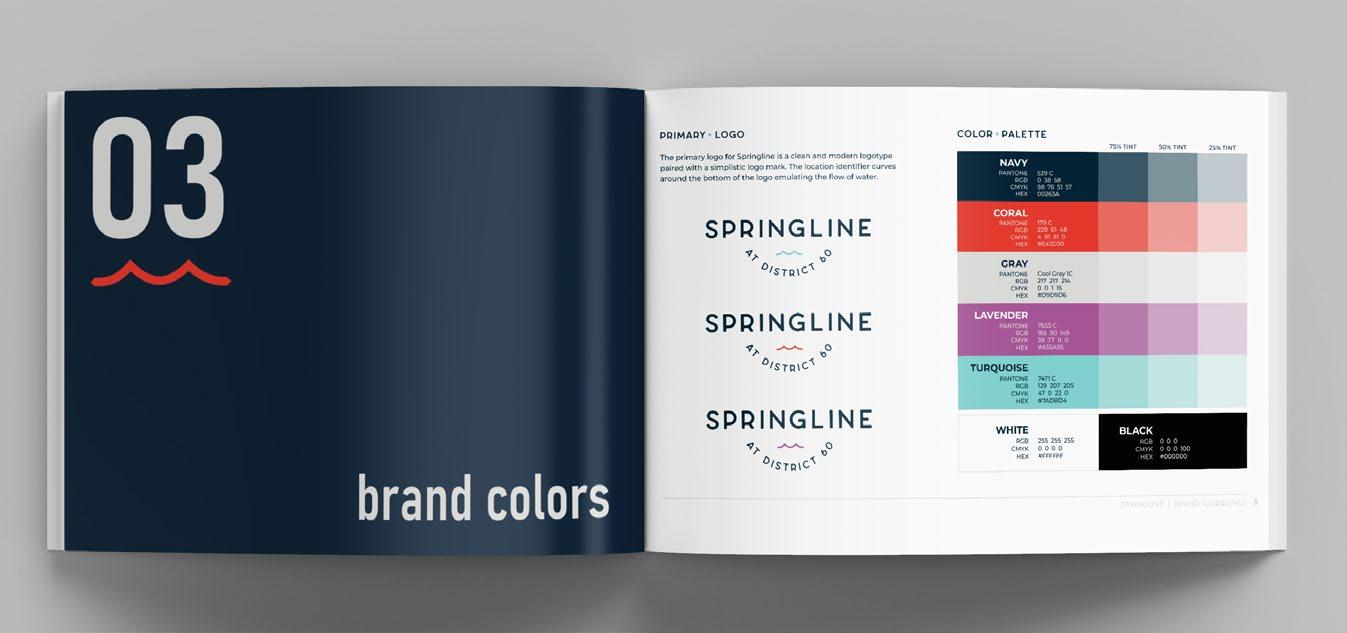 Cooper Carry’s Branding Studio created the identity for Springline at District 60, celebrating Chesterfield County’s historic springs. The modern logotype and minimalist mark symbolize flowing water, while a vibrant color palette reflects the community’s energy and optimism.