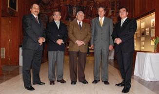 De izq. a derecha, Dr. Alberto Lifshitz, Presidente de la CONAMEGE; Dr. Romero Rodríguez, Coordinador de Asesores de la Secretaría de Salud; Dr. Mario Acosta, Presidente Ejecutivo de Alianza Médica; Dr. Gustavo Olaiz, Comisionado de Autorización Sanitaria; Dr. Eduardo Pesqueira Villegas, Director General de Planeación y Desarrollo en Salud; Q.F.B. Carmen Becerril, Directora Ejecutiva Farmaco Vigilancia; Mtro. Alfredo Sánchez, Director FES-Zaragoza (UNAM)