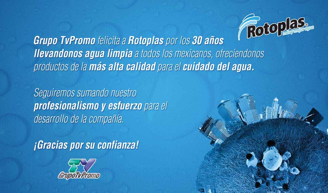 Dow, felicita a Rotoplas por su 30 aniversario, que son muestra de su compromiso y esfuerzo constante que han ayudado a elevar la calidad de vida de miles de mexicanos.