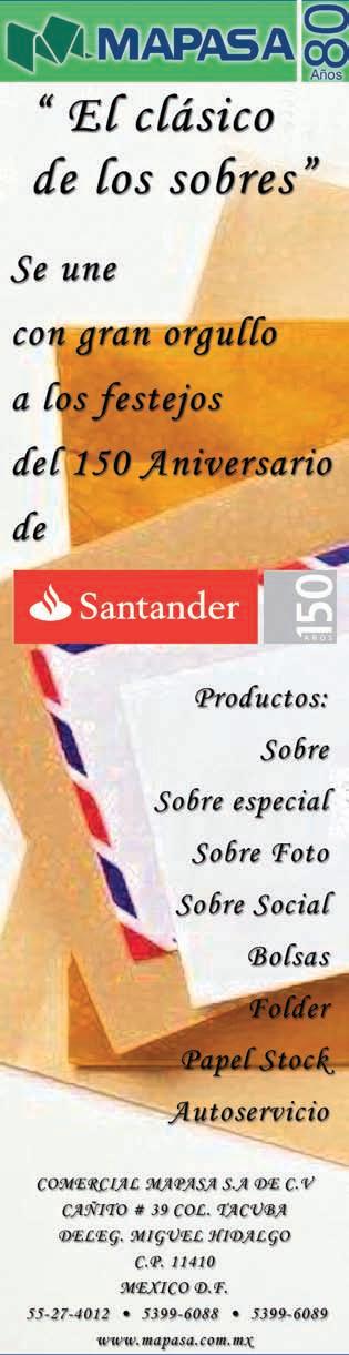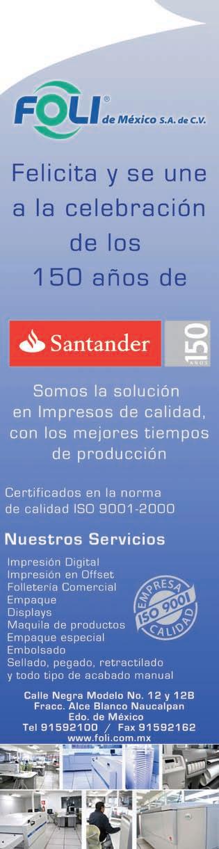 Hoy, 150 años después de su fundación, Santander es uno de los grupos financieros más sólidos y vitales del mundo. Presente en México desde 1997, mediante diversas adquisiciones ha logrado colocarse como el tercer banco, diferenciándose de sus competidores por su carácter innovador, que en muchos sentidos ha marcado el ritmo en el sector financiero nacional.